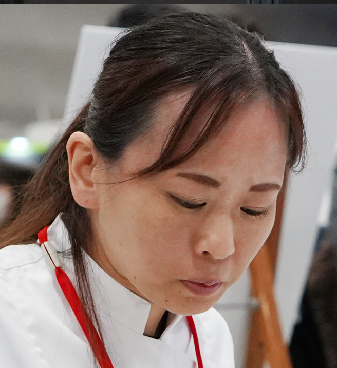 今回、審査員のひとりに、2023年の「クープ・デュ・モンド・ドゥ・ラ・パティスリー」世界大会でチームの一員として優勝の栄冠を手にした高橋萌シェフ(エキリーブル)の姿がありました。世界を知る高橋シェフからも、アシエットデセールで審査員にインパクトを与えるためのアドバイスが語られました。