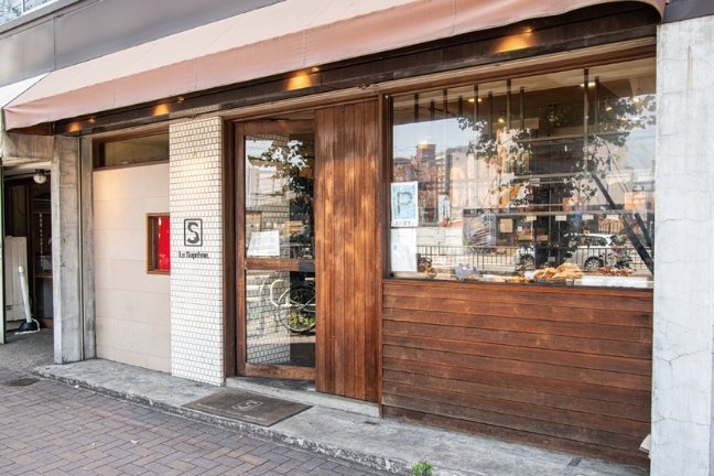 美しく統一された木造のカウンターには約80種類のパンが毎日並ぶ。名古屋市内に系列店を3店舗構えるほどの人気店で、地元の方が毎日パンを求めてやってくる。もともとこの土地にあったのはオーナー渡辺和宏さんの祖父の代から続く和菓子屋で、そこを改装し、2007年ル・シュプレームを開業。フランス語で最高、極上という意味のシュプレームを店名に加え、最高という店名は御来店されたお客様に対し全力でパンに向き合って行きたいという気持ちを表現したものだ。店名は変えたものの、会社名は祖父の代から続く株式会社梅花堂キャンデーストアーとそのまま残した。今もお店の隣のパン工房の扉には、その名前が刻まれている。
