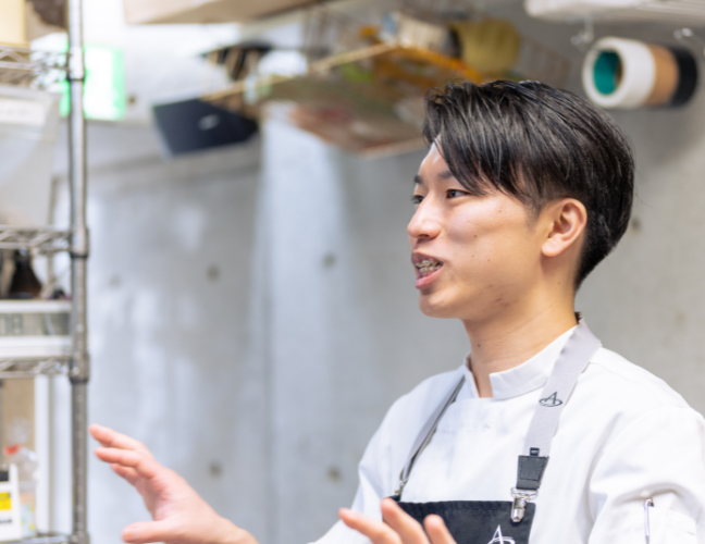 僕はお菓子作りが好きなのはもちろん、人と接するのも好きなので、このように人と関わりながらいっしょに何かを創り上げていく今の働き方に、非常にやりがいを感じています」