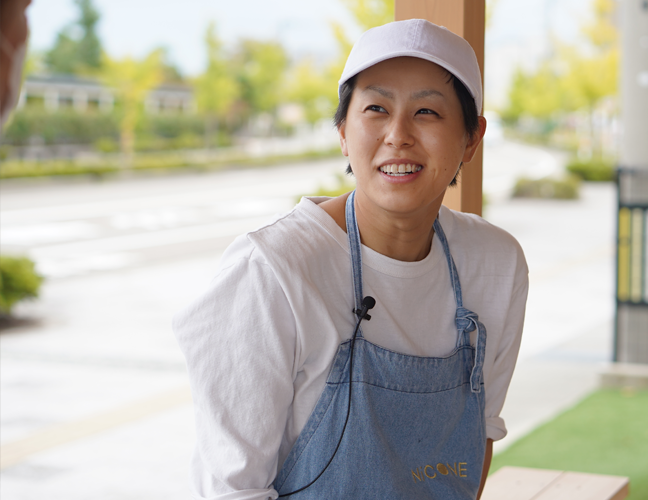 「こんにちは!」と元気に迎えてくれたのがNiCONEオーナーシェフ、釣海帆さん。お忙しく疲れているはずなのに、それを感じさせない爽やかな笑顔です。「天気がいいので外でお話ししましょうか」と、お店の前のウッドデッキに腰掛けてインタビューがスタート。