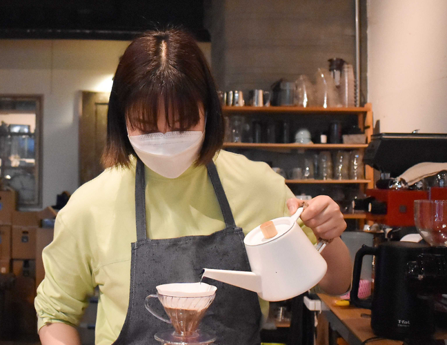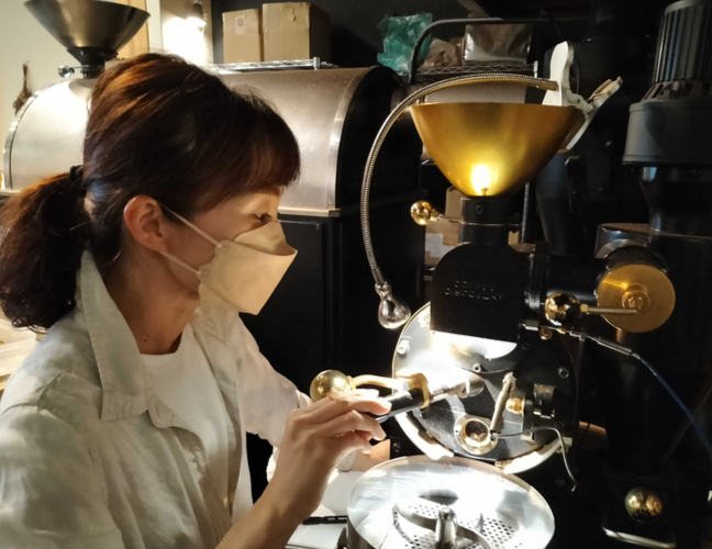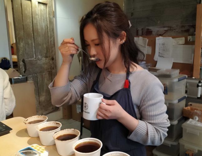 ▲現在カフェ開業に向けて勉強しているという女性スタッフ。この日は、カッピング(コーヒーの品質の善し悪しを、同じ条件下において判断する作業)の勉強をされていました