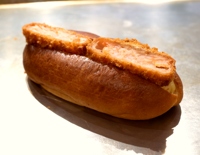 同じく「食べごたえ」で人気なのが「海老カツパン」(450)。ブリオッシュ生地のパンにボリュームがある海老カツがドンッ。タルタルソースもたっぷり。見た目のインパクトは絶大です。
