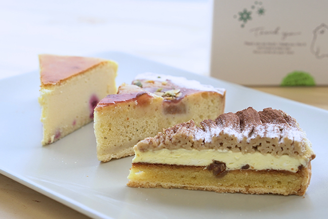 「定番商品」ですと、ベークドチーズケーキ、蒸し焼きショコラ、キャラメルバナナタルト、カフェマリアージュなどがあります。