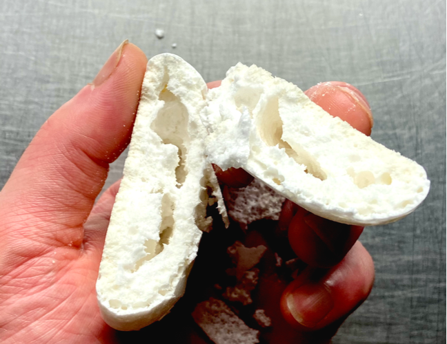 卵のコクがなく、普通のメレンゲに比べて甘さを強く感じてしまいますが、卵なしでメレンゲがつくれるってすごい!!