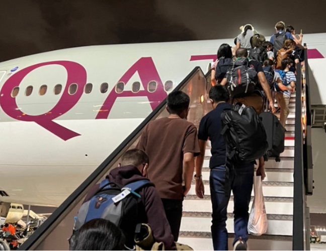 以前と違ってPCR検査の陰性証明書もいらず、楽々の帰国!!と思いきや、戦争の影響で、通常ならロシアを経由するルートがドーハ経由で帰ることに…。