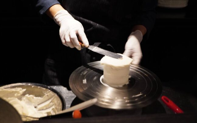 スポンジは調度いい厚さでふわふわ、少し揺らしたら崩れそうなくらい繊細なショートケーキが目の前ででき、提供されます。