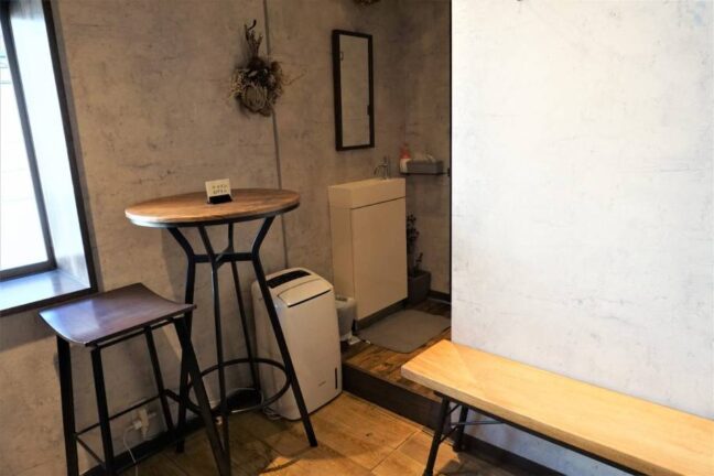 よく見るとコンクリートと木という空間が広がっていて、ここにも表と裏を感じられました。ドライフラワーが飾られていて細部までおしゃれ!