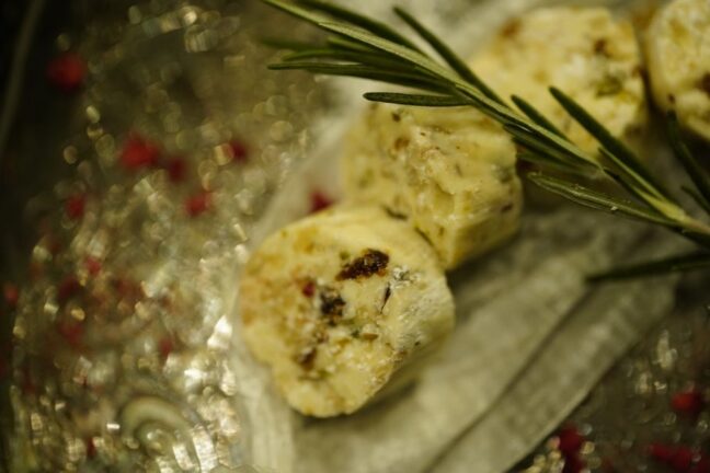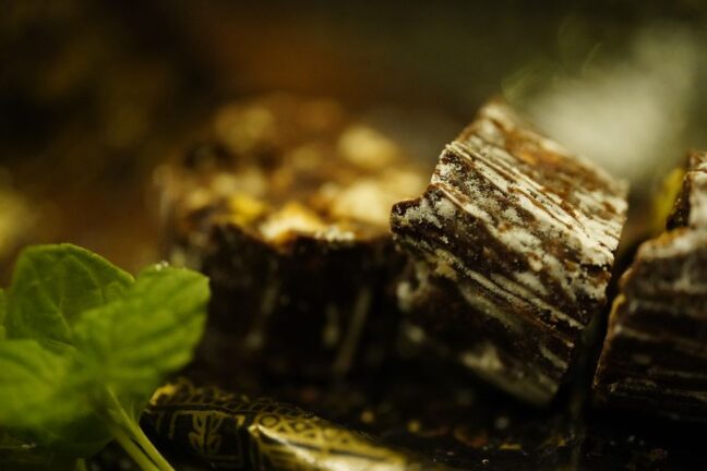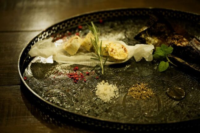 ue_mon:確かにCACAOTAILでは盛り付けにも拘っている印象があります。チョコレートサラミと一緒に蜂蜜やブラックペッパー、ハーブが盛り付けられていて、味の変化も楽しむことができますね!そんなチョコレートサラミのレシピを考える上で苦労したことはありますか?
