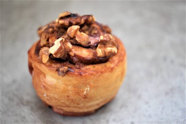 くるみはトッピングされているだけでなく、砕いたものをロールしているので、どこを食べてもカリッとした食感が楽しめるのがうれしい!
