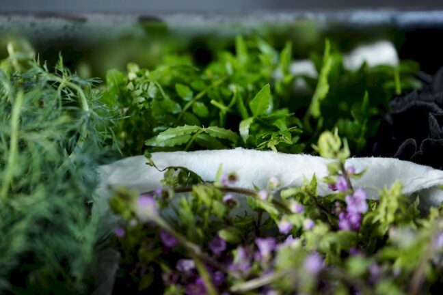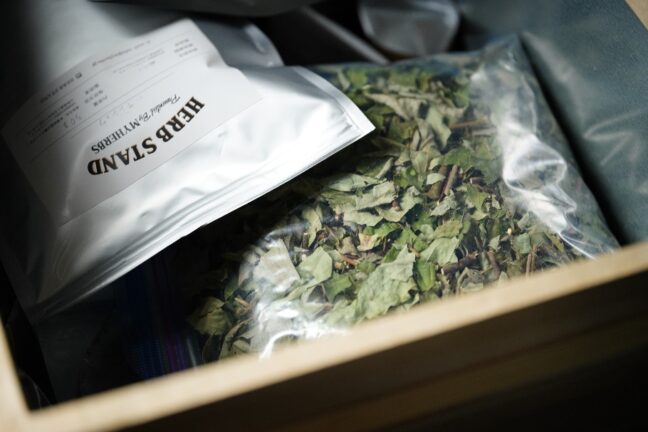 華やかな見た目とはかけ離れた茶葉。そんな茶葉が秘めるポテンシャルは想像のはるか上を行く、と田中シェフ。茶葉を煎じたもの、水出しし冷やして旨味と甘みを引き出しものなど、実際のコースの中ではさまざまな茶葉の美味しさを楽しむことができます。季節で変わる茶葉の顔や種類も、楽しみ一つ。