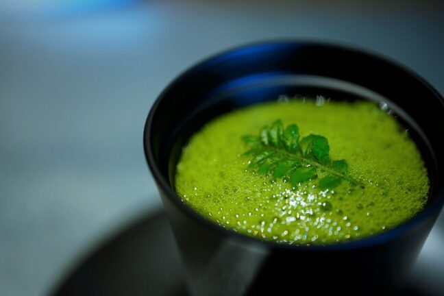 特に田中シェフが惚れた福岡県の「八女抹茶」をベースにデザートを構成していくことが多く、深みとコク、香りとその表現の幅の広さはお茶の新たな楽しみ方や魅力に気づくことができます。