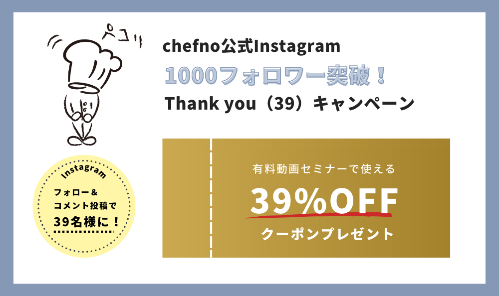 chefno公式インスタグラム『1000フォロワー突破!』記念キャンペーンを実施します